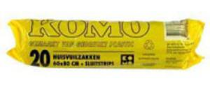Komo vuilniszakken,_x000D_ _x000D_ Zijn gekeurmerkte huisvuilzakken. Zeer stevig. _x000D_ 60x80cm + een rits sluitstrips._x000D_