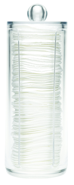 Elegante dispenser voor wattenschijfjes. Dispenser is gemaakt van acrylic en heeft een diameter van 7cm._x000D_