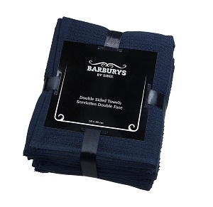 Deze katoenen handdoeken zijn uiterst geschikt voor de barbier. De kant met gewafelde stof gebruik je voor het knippen en scheren. De andere zachte zijde gebruik je voor het drogen.