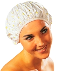 Kunststof douchemuts bedrukt, met elastiek.