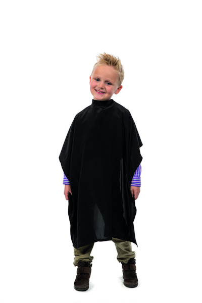 Kindercape met velcrosluiting in zachte en antistatische stof. Hoeft niet te worden gestreken na drogen op een kleerhanger