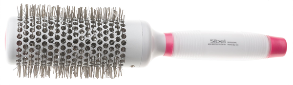 Thermische borstel met nylon pennen, handvat in silliconen gel en toermalijnen borstelhuls.