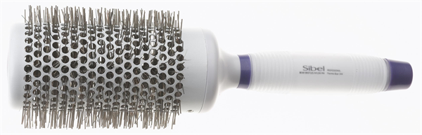 Thermische borstel met nylon pennen, handvat in silliconen gel en toermalijnen borstelhuls.