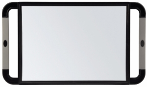 De handvaten van deze spiegel zijn lichtjes in een V omhoog gebogen om de spiegel gemakkelijker op te lichten. De rubberen handvaten geven een vaste houvast.